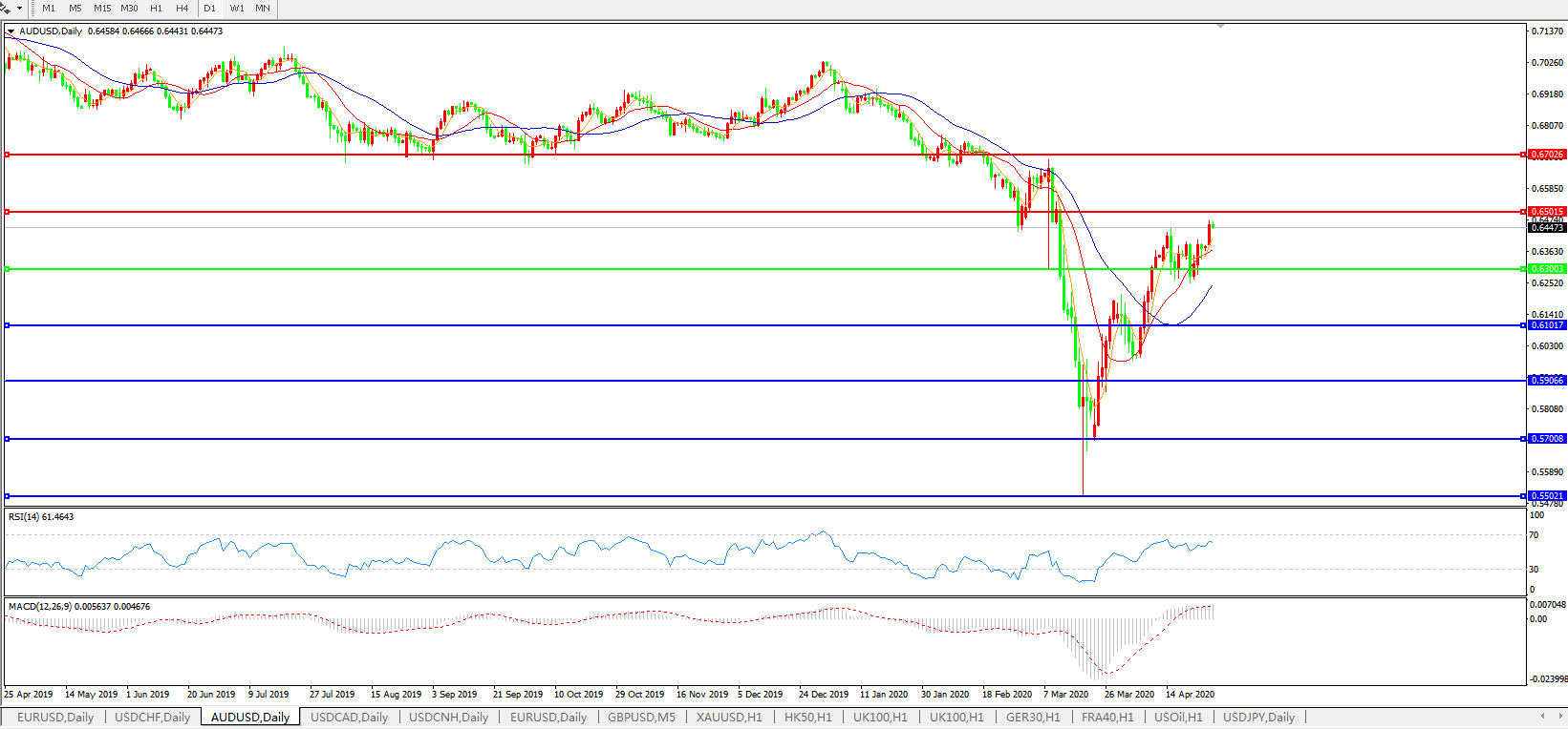 澳元兑美元AUDUSD 日线图: