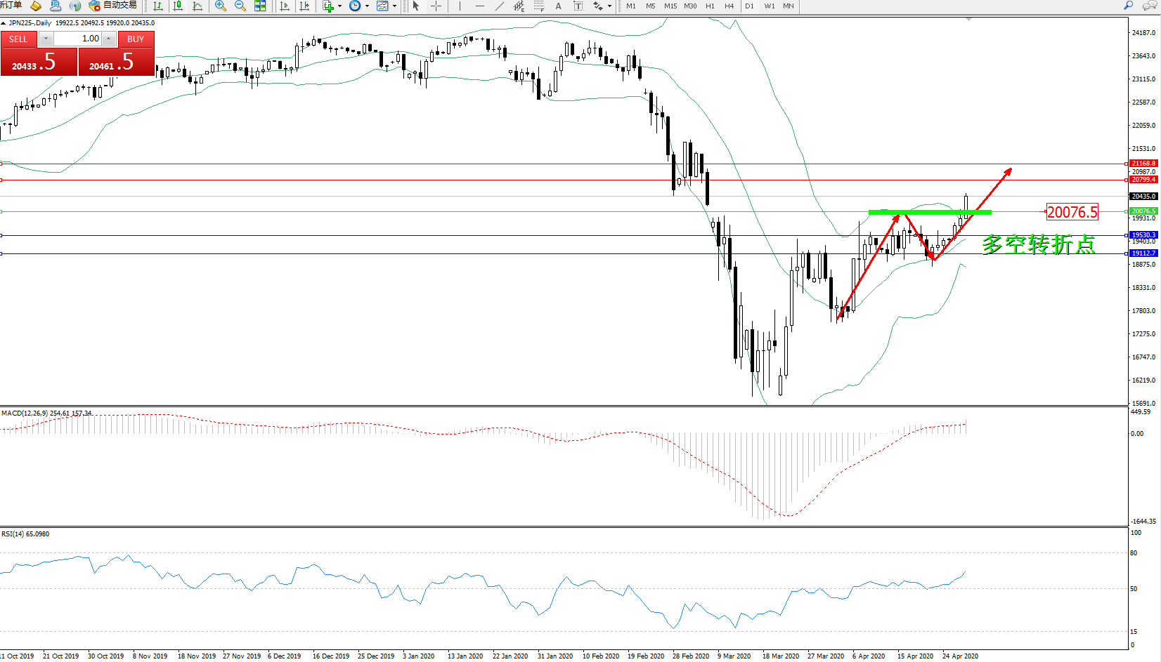 交易策略:20076上方看涨,目标20799、21168