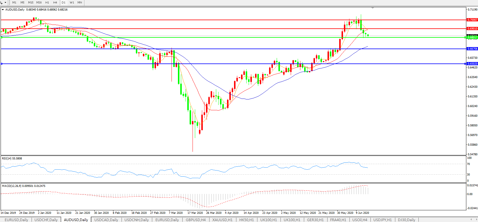 澳元兑美元AUDUSD 日线图: