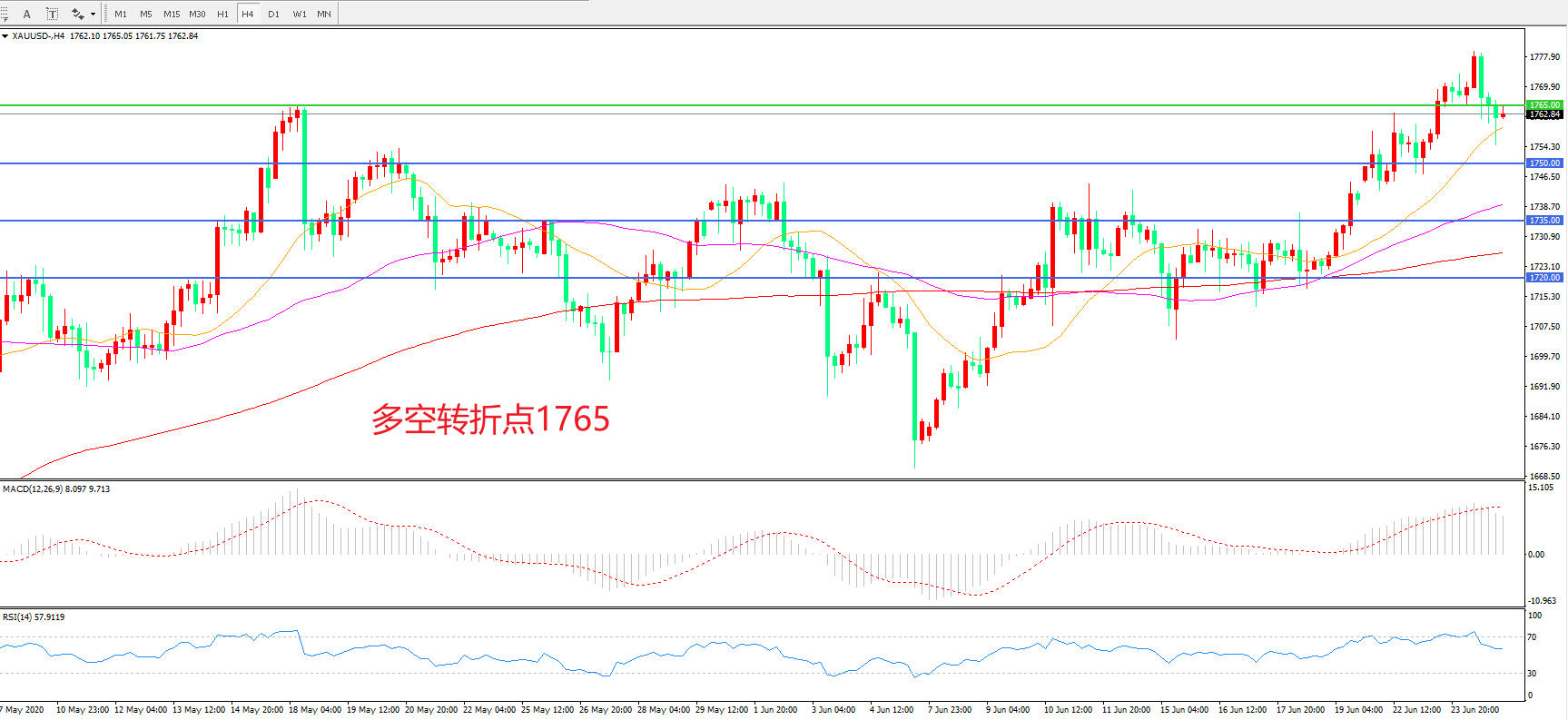 交易策略:在1765.00之上看涨,目标1780.00   1800.00