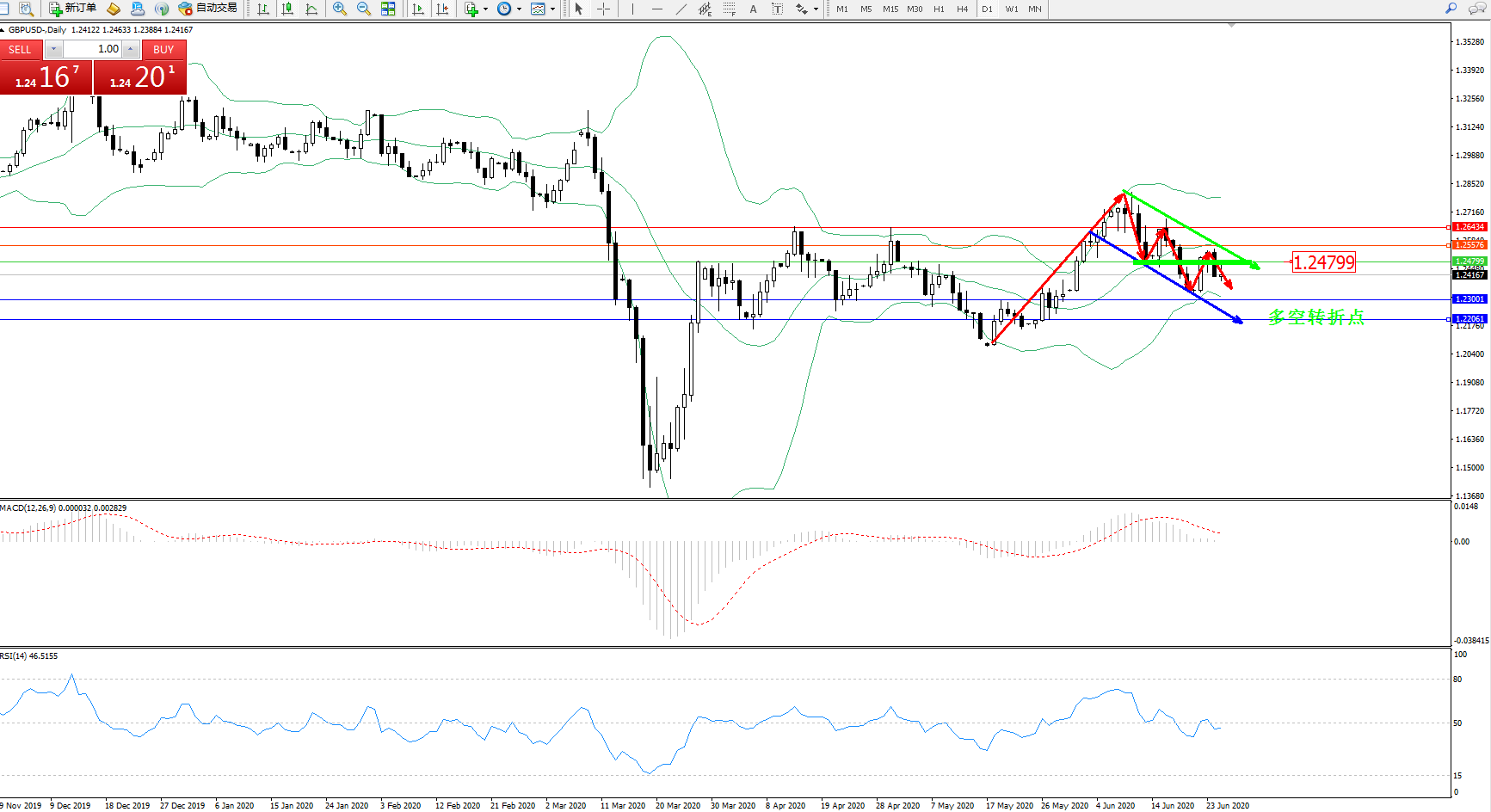 交易策略:1.24799下方看跌,目标1.23001、1.22061