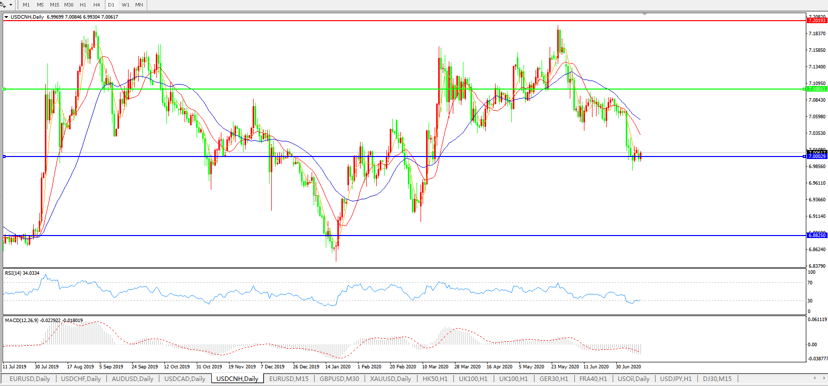 交易策略: 在7.1000之下,看跌,目标价位为7.0000,然后为6.8820。