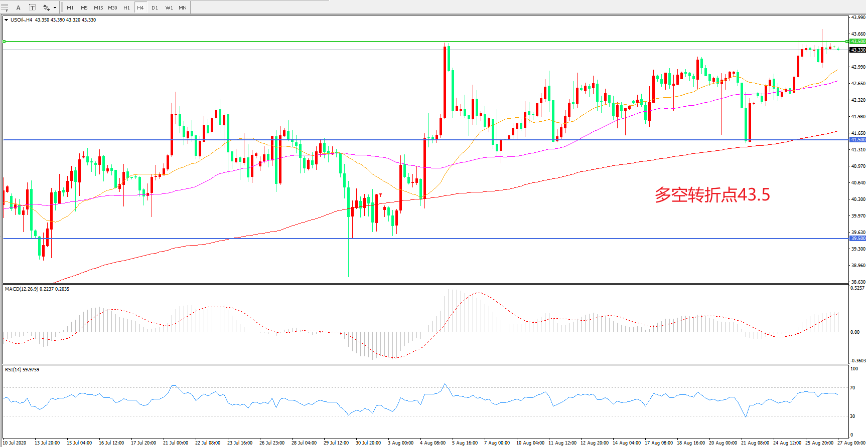备选策略:在43.50之下看跌,目标41.50 39.50