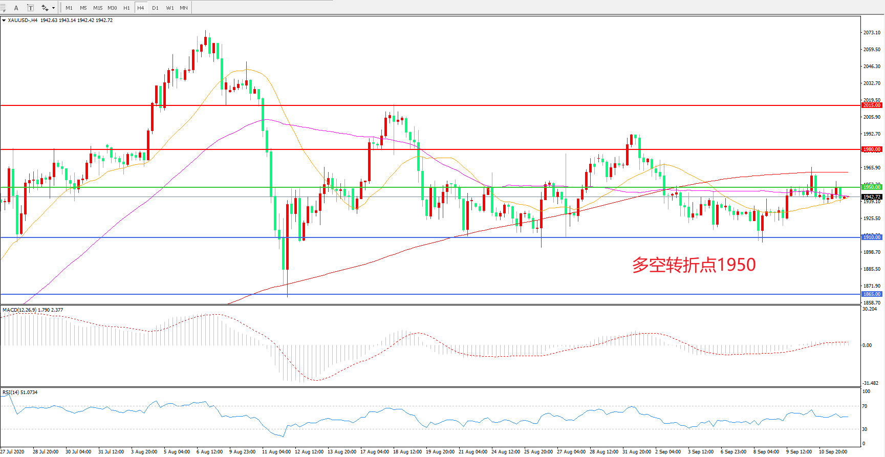 多空转折点:1950.00