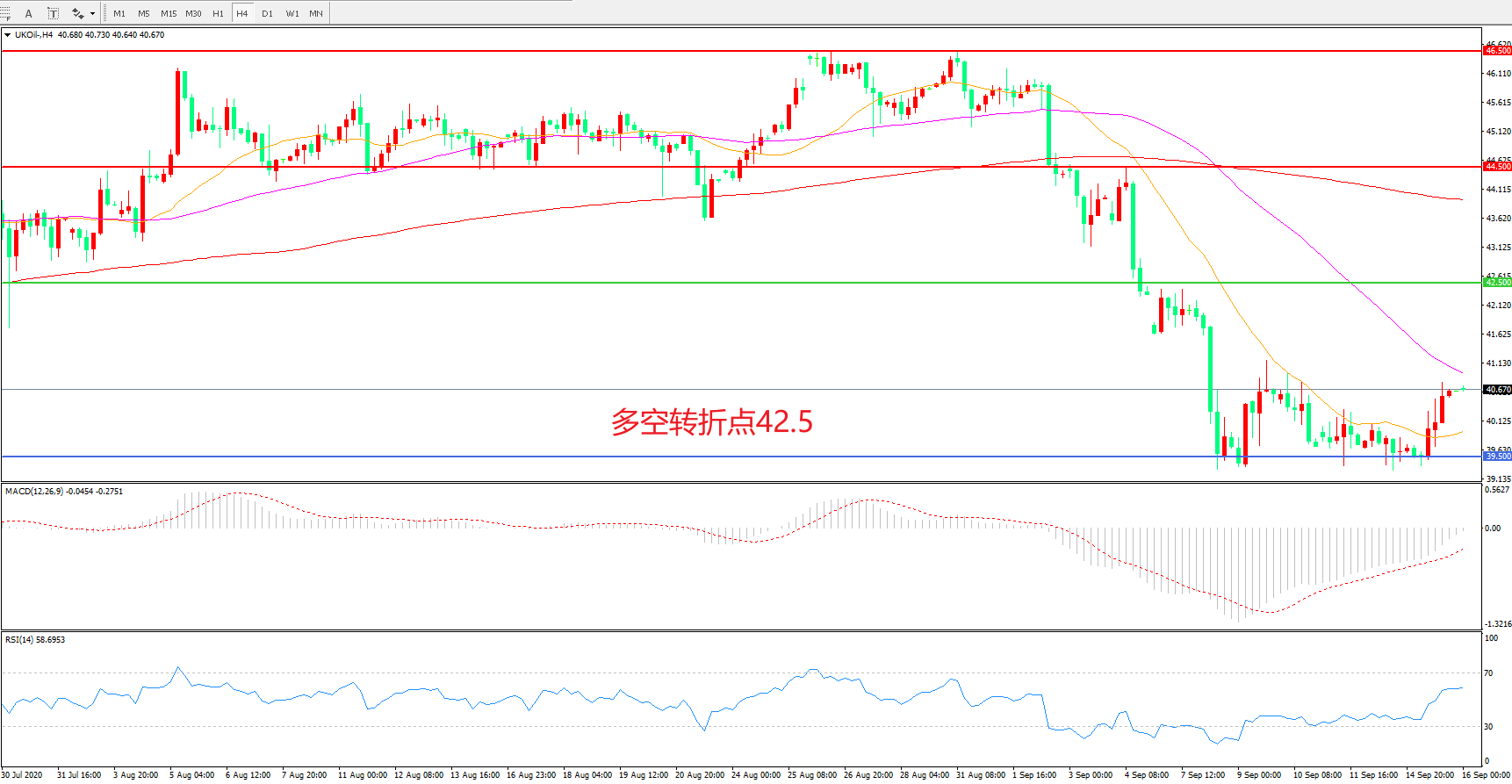 4小时图看,油价低位调整后连续反弹,短期走势有所回暖,但55周期均线依然是上方明显阻力, MACD红柱增加,RSI指标走平,日内延续震荡概率较大。