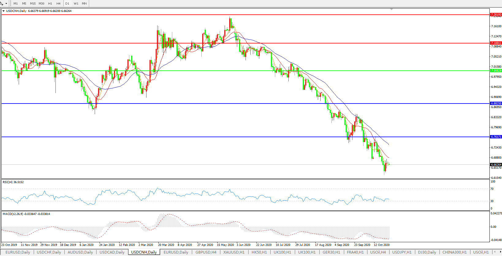 美元兑人民币USDCNH    日线图: