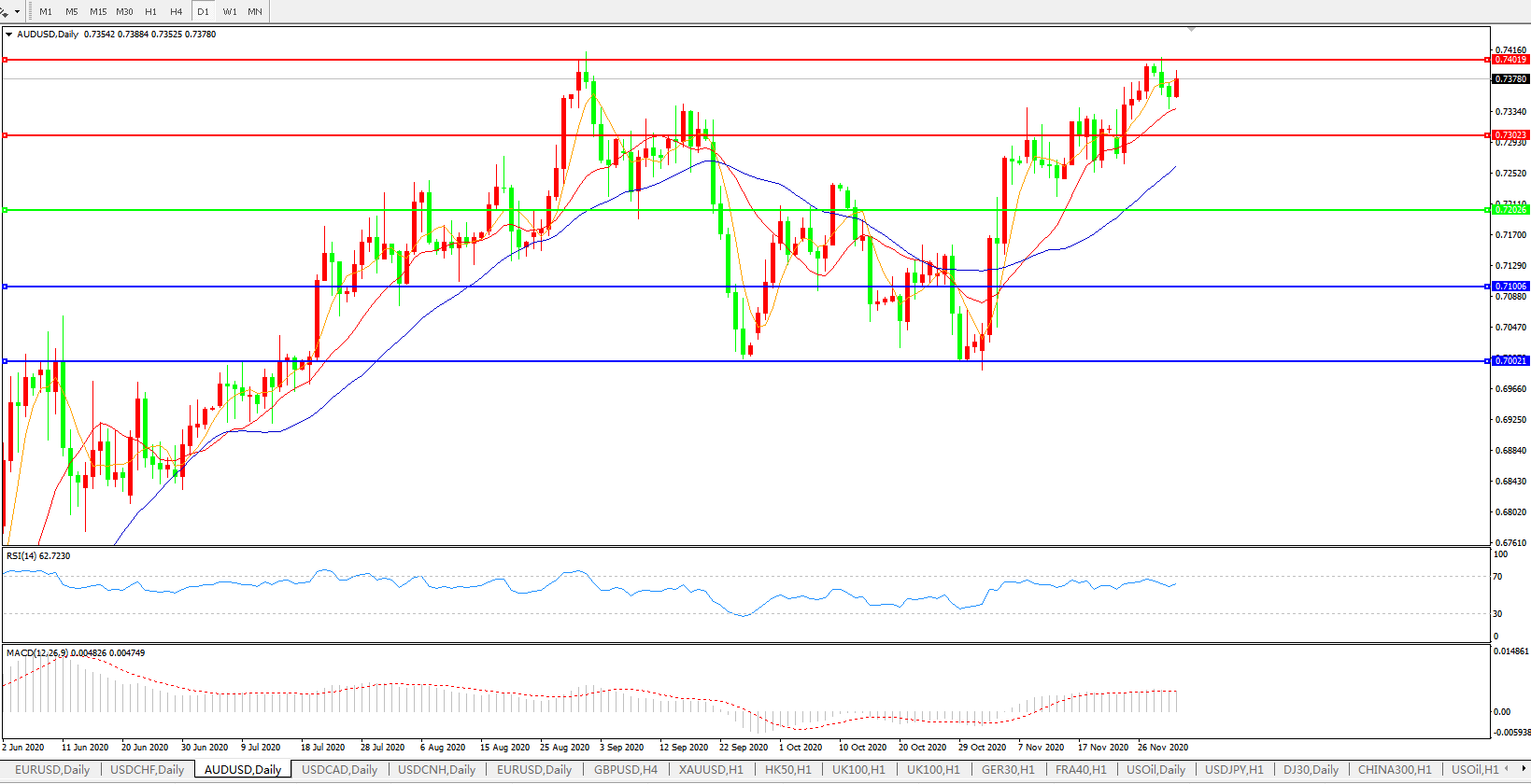 压制位:0.7300     0.7400