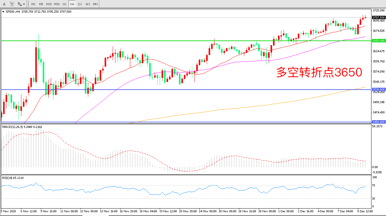 周二(12月8日),美国财长姆努钦称,他和佩洛西交谈过,他交给佩洛西一份9160亿美元规模的救助方案。这份方案包括资助州和地方政府,给予企业和学校强有力的免责保护,这是特朗普政府大选以来首次试图打破新刺激谈判僵局的动向。标普500受到提振,大幅上行,收报3709.50点。此外美国政府关门的威胁都已经迫在眉睫,若到本周五还没有新的支出议案批准,本周六联邦政府就将因预算资金告罄而被迫停摆。