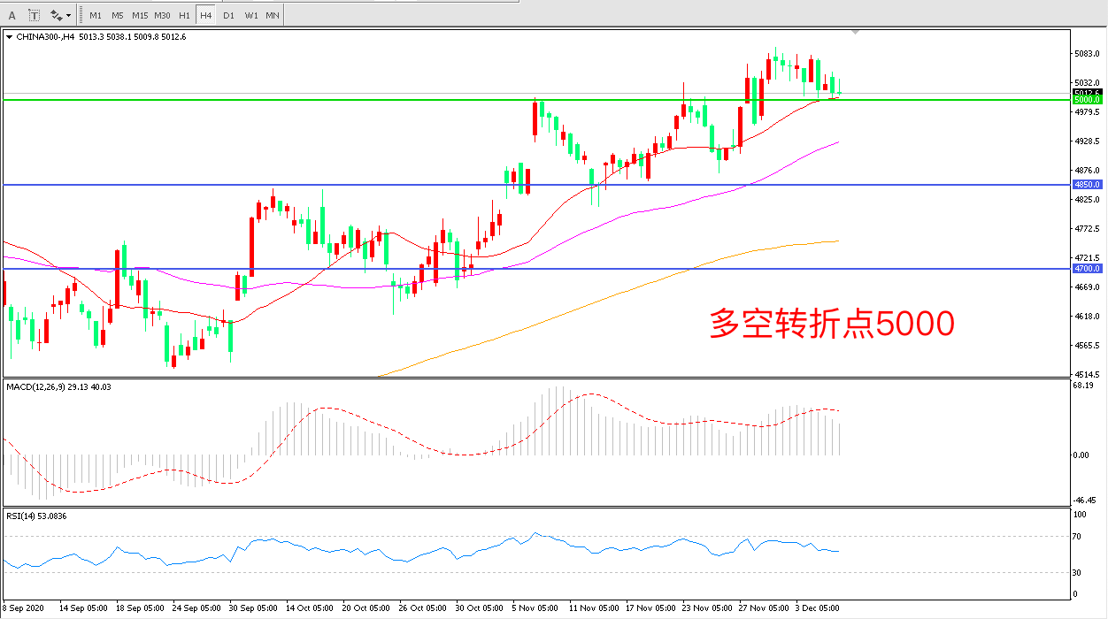 交易策略:在5000.00之上看涨,目标5150.00       5300.00