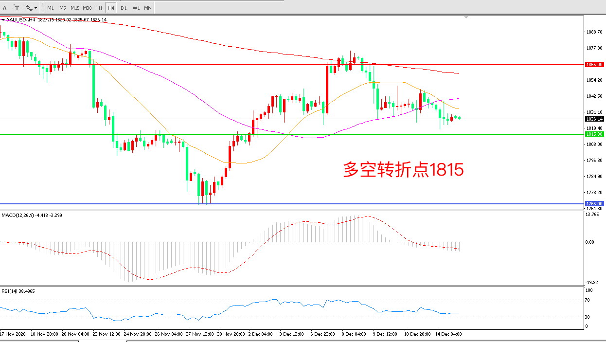 周一(12月14日),英国与欧盟延长脱欧贸易谈判,美国开始接种新冠疫苗,市场避险情绪回落金价延续弱势震荡收报1826.14美元/盎司。美元指数大幅反弹带给金价沉重的下行压力美国开始接种新冠疫苗推动了更广泛金融市场的乐观情绪,投资者寄望于由此带来的经济复苏,削弱了黄金的避险需求。