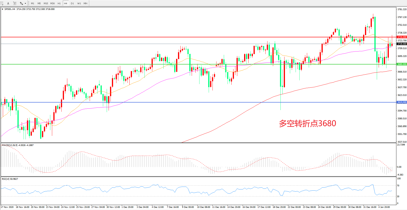 多空转折点:3730.00