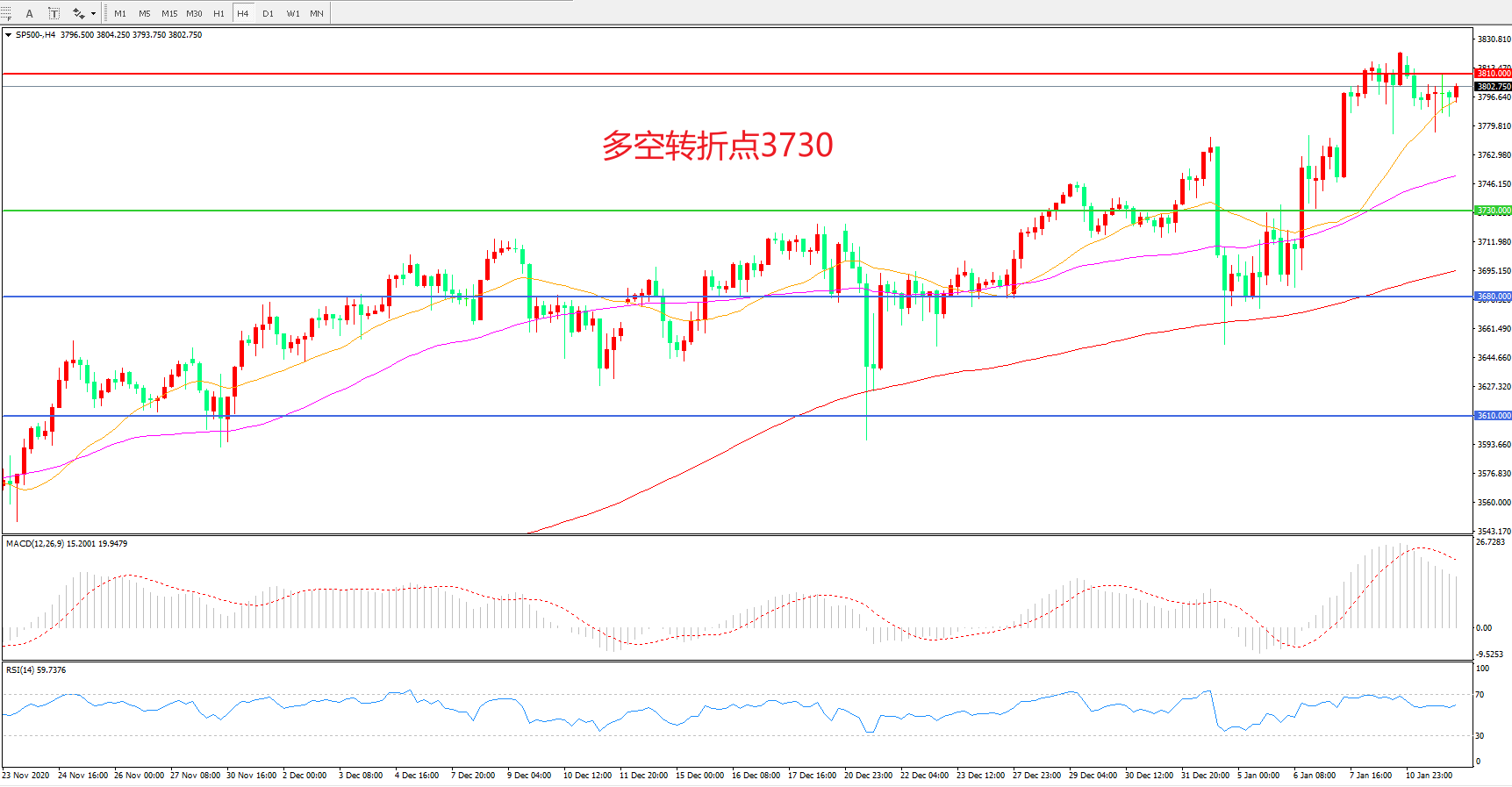 多空转折点:3730.00