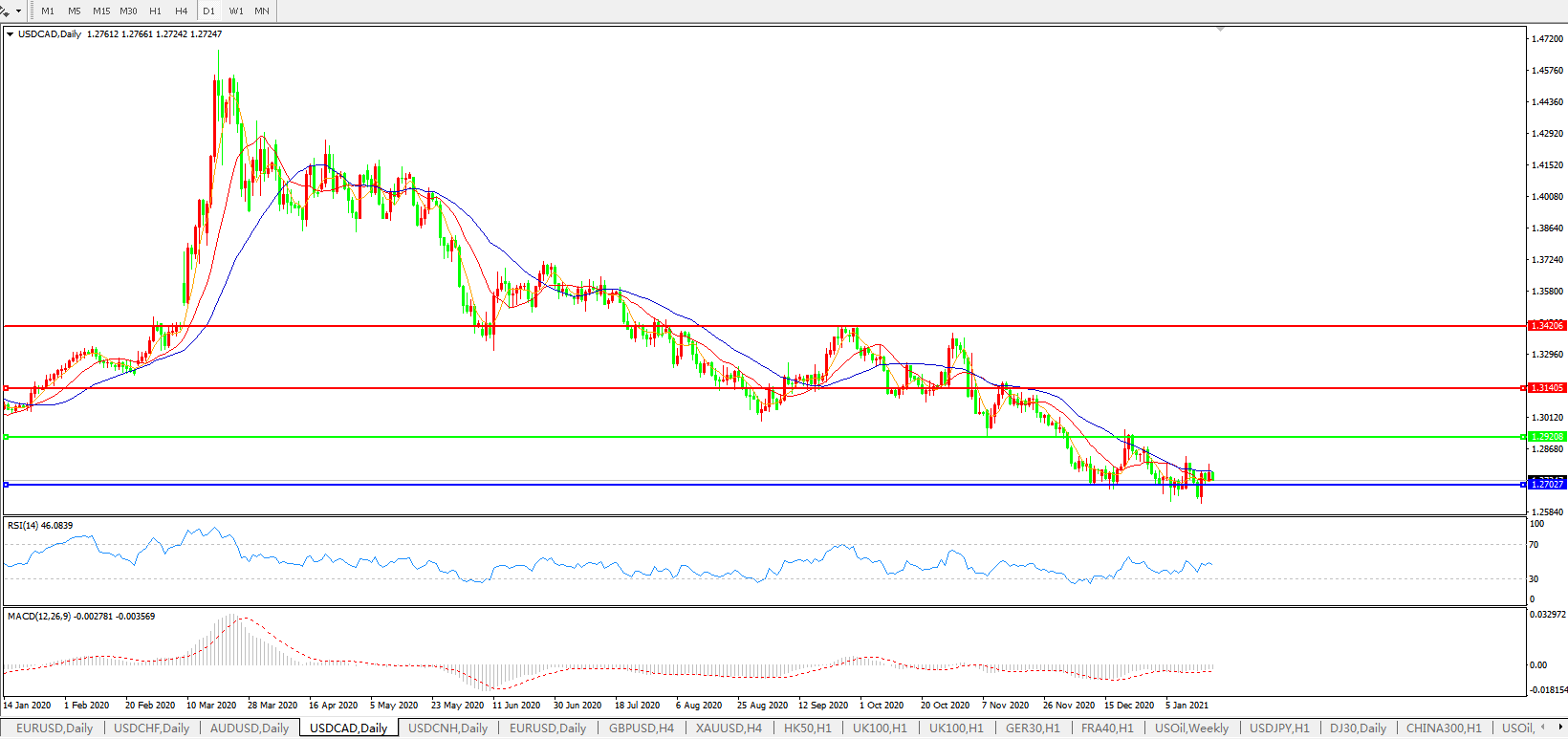 美元兑加元USDCAD 日线图: