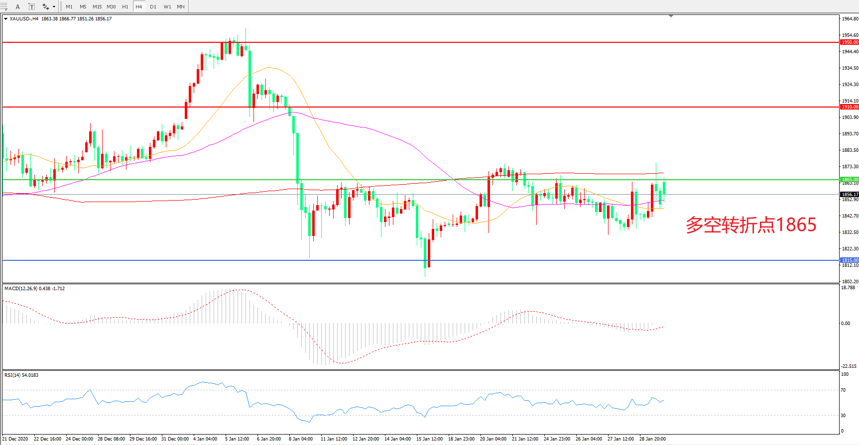 多空转折点:1865.00