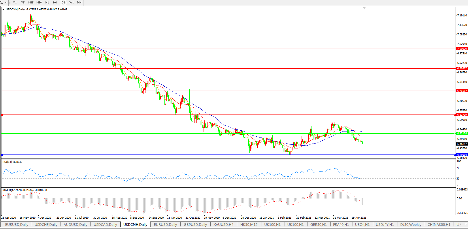 备选策略: 在6.5200之上,看涨,目标价位为6.6270,然后为6.7615。