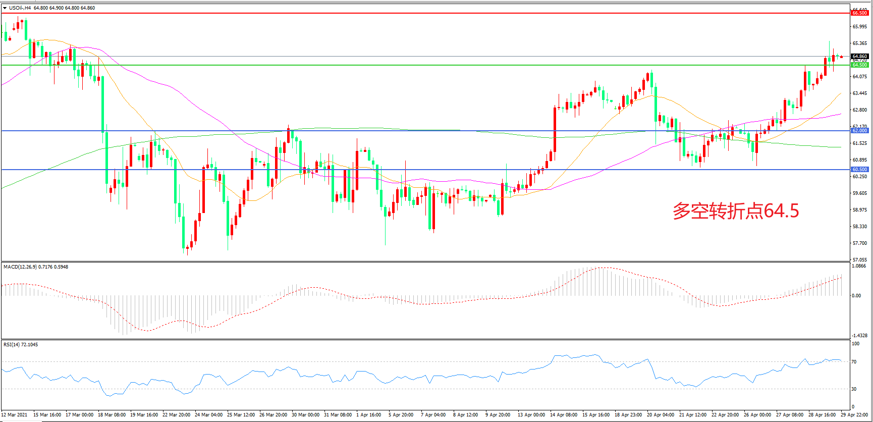 交易策略:在64.5.00之上看涨,目标66.50 69.00
