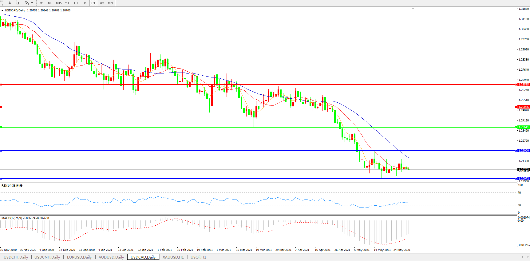 美元兑加元USDCAD    日线图: