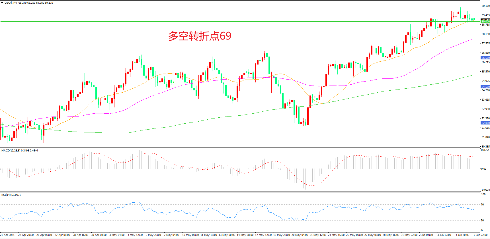 多空转折点:69.00