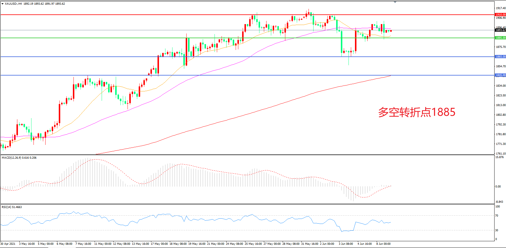 交易策略:在1885.00之上看涨,目标1910.00 1935.00
