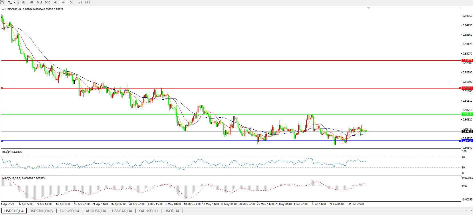 美元兑瑞郎USDCHF    4小时图:
