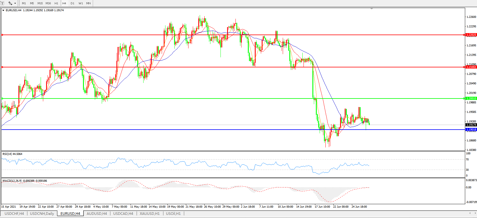欧元兑美元EURUSD   4小时图: