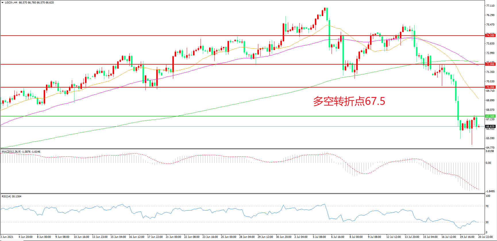交易策略:在67.50之下看跌,目标64.00       60.50