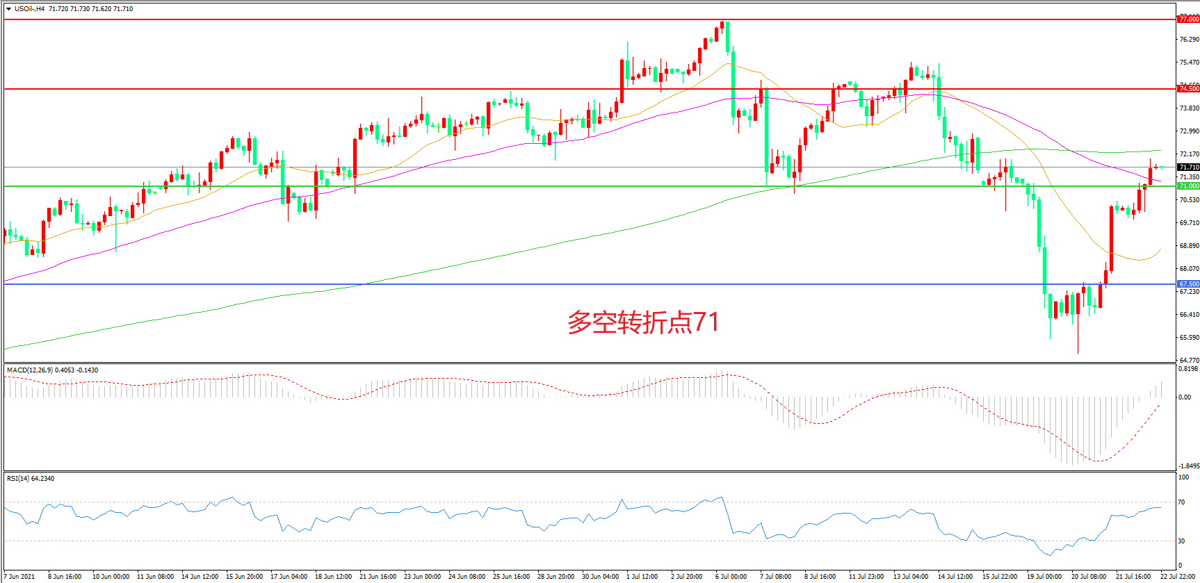 多空转折点:71.00