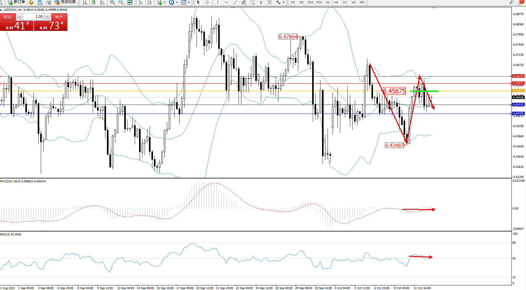 交易策略:6.45675下方看跌,目标6.45115、6.44755