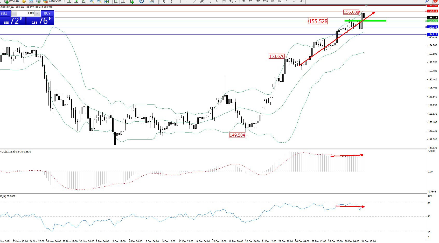 英镑兑日圆维持155.725附近震荡,英格兰不会采取新的疫情限制措施,目前政府正等待关于卫生服务体系能否应对高感染率的更多证据。因为对疫情所带来经济影响的担忧有所缓解,提振了风险货币,预计英国央行将在2022年进行更多加息。