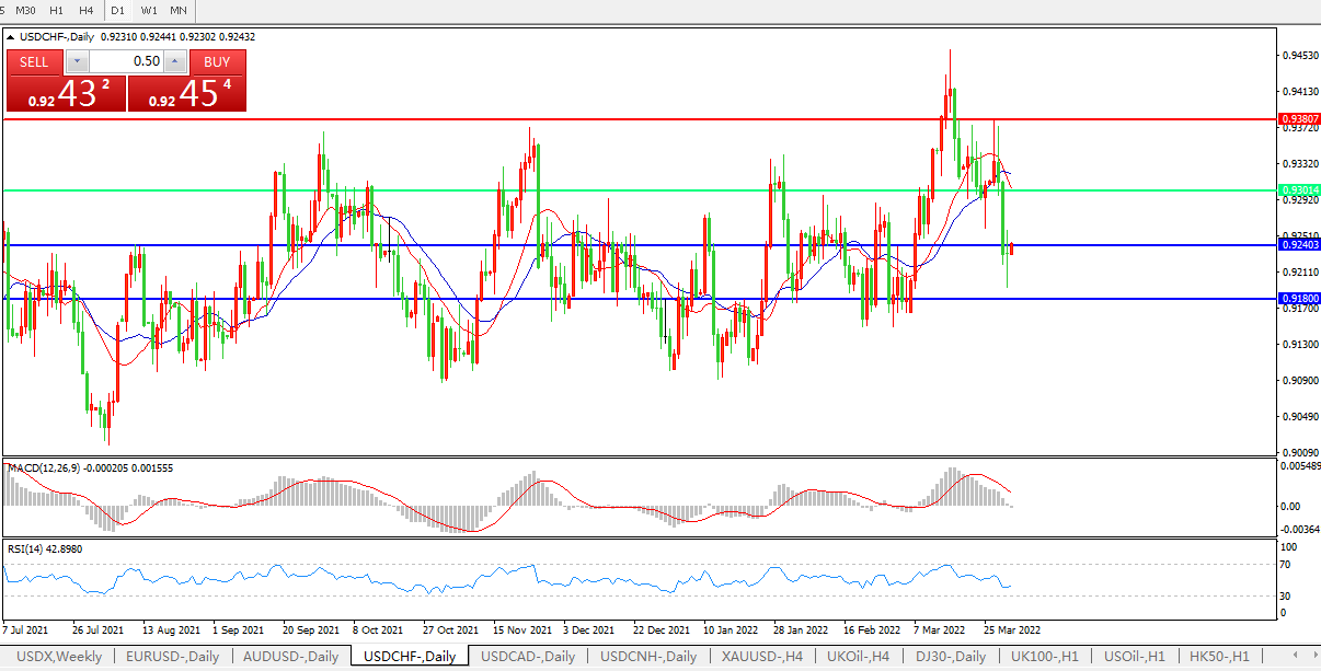 美元兑瑞郎USDCHF 日线图: