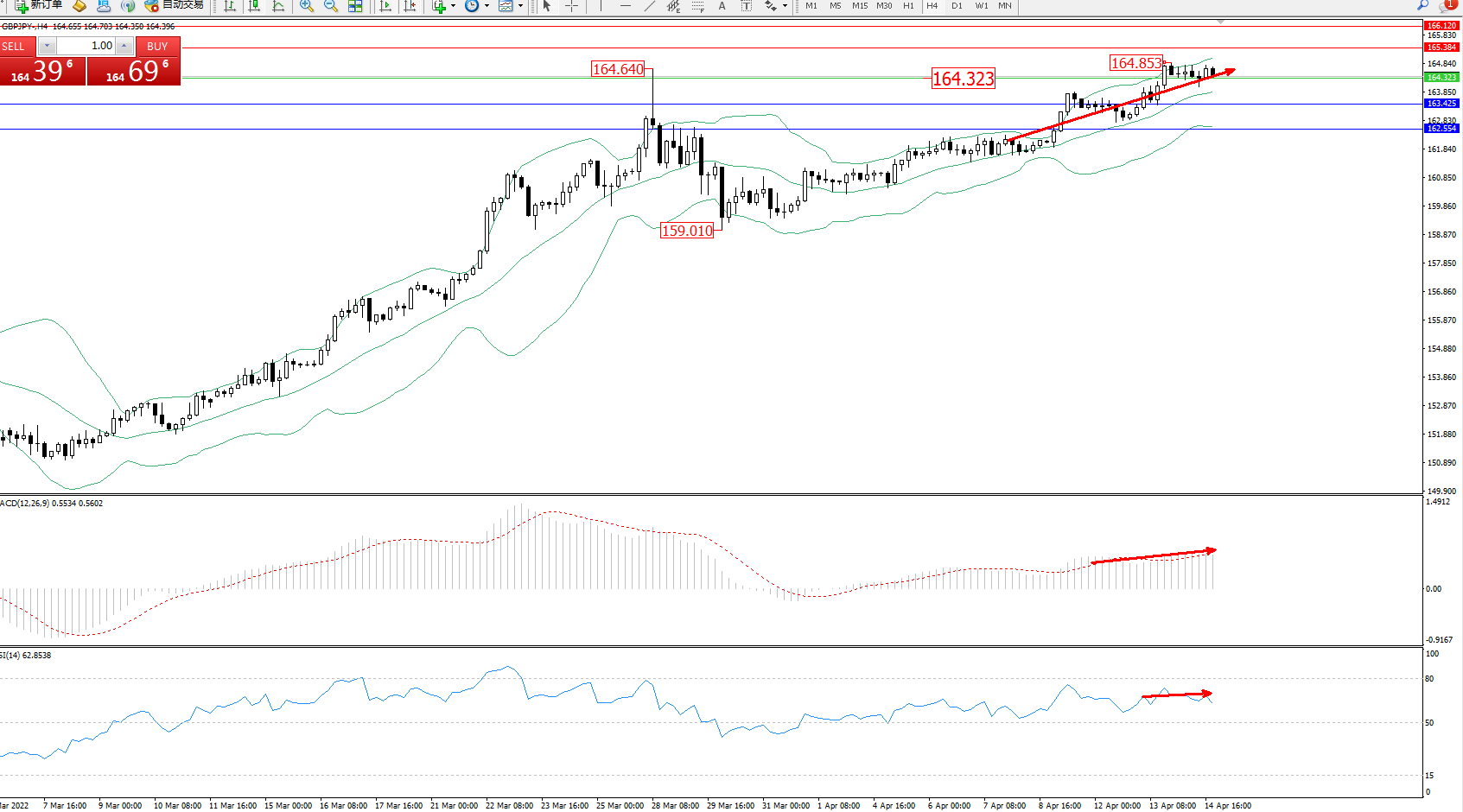 英镑兑日圆维持164.396附近震荡, 英国公布2DCLG房价指数同比升10.9%,预期升10.1%,前值升9.6%。数据反映英国房地产市场继续保持强劲增长势头,目前英国平均房价飙升至创纪录俄282753英镑,整体数据为六个月来的最高水平。而且当日英国统计局还公布了3月份通胀率上升至7%,高于预期6.7%。数据激发市场对于英央行进一步加息的预期,从而也使令近期不断走低迷的英镑昨日出现了大幅反弹的行情。
