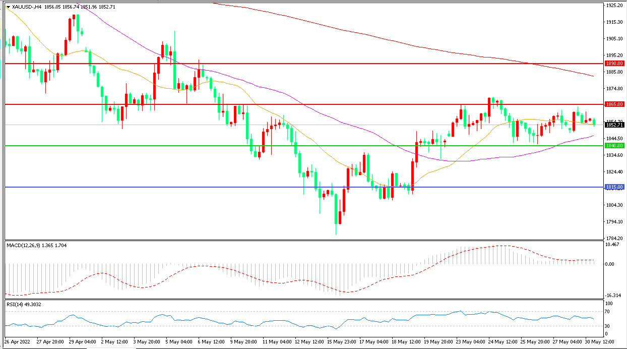 交易策略:在1840.00之上看涨,目标1865.00      1890.00