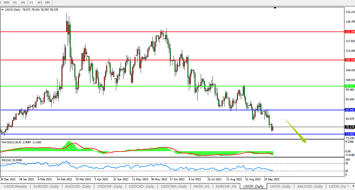 日线图看:油价止跌小幅反弹, MACD量能柱0轴下方放量,RSI指标小幅走强,短期油价小幅反弹概率增大。