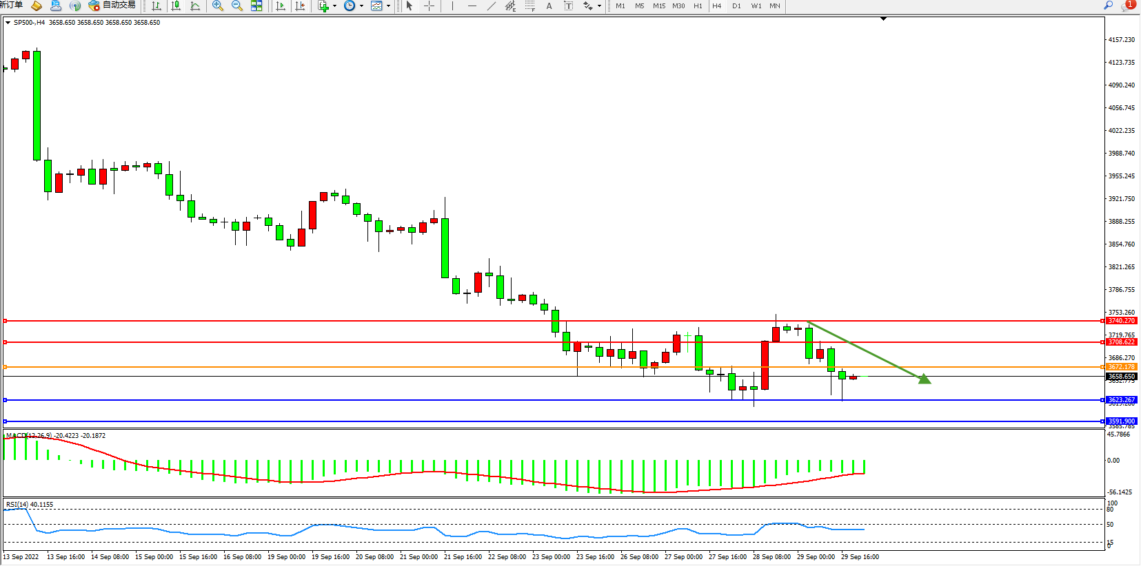 标普SP500——4小时K线图显示:
