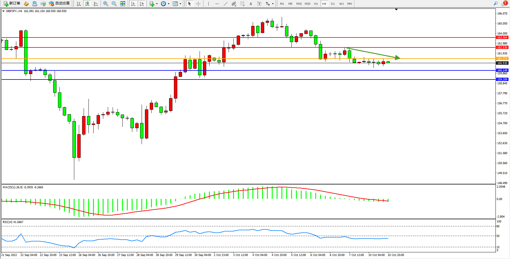 备选策略:161.371上方看涨,目标162.530、163.564