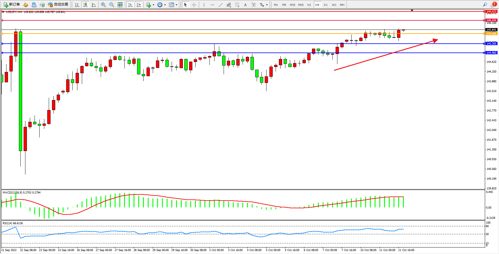 交易策略:145.688上方看涨,目标146.191、146.523