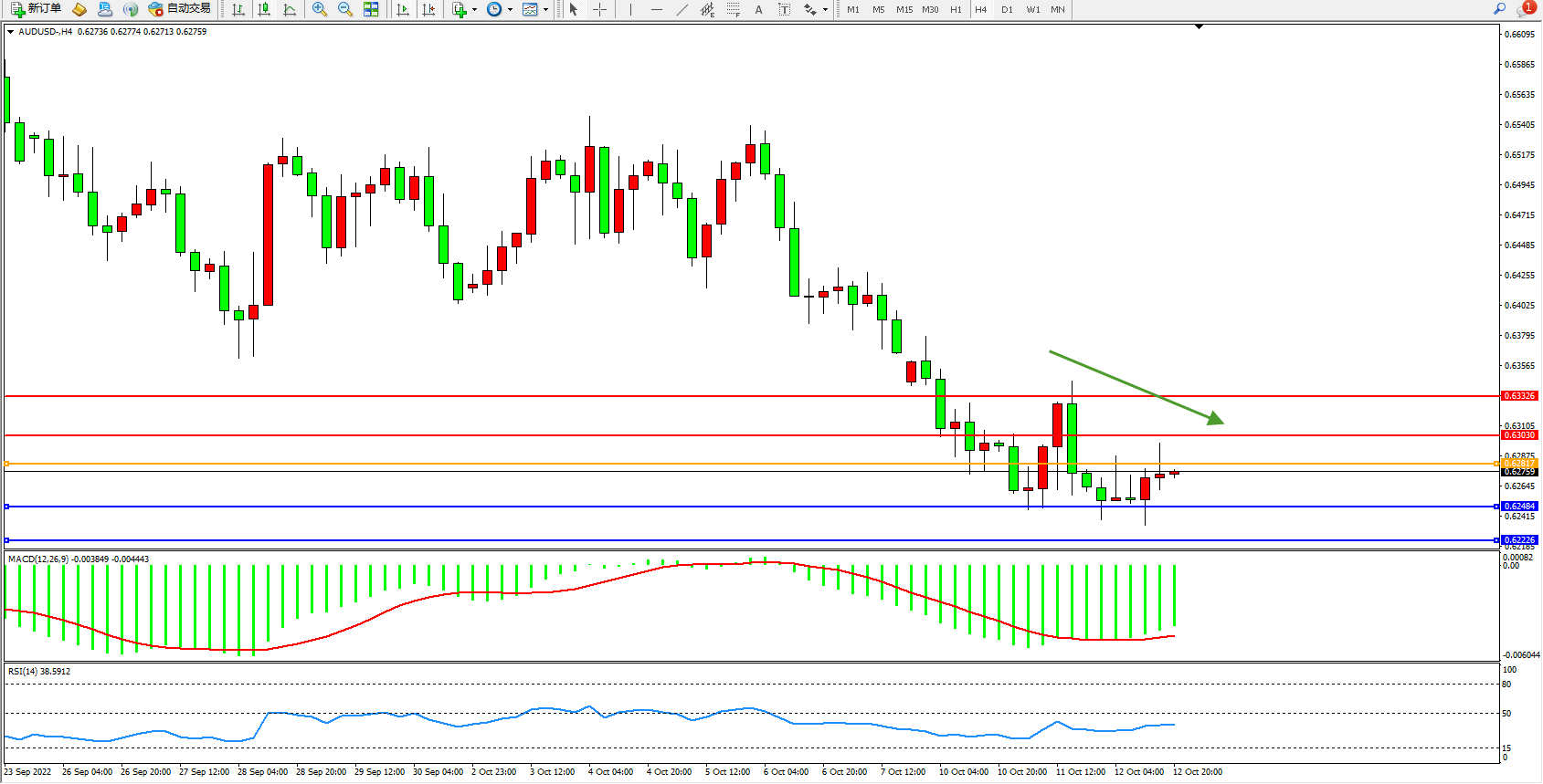 澳元美元AUDUSD——4小时K线图显示: