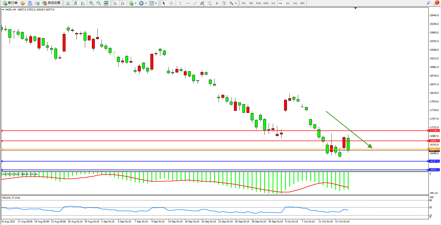 恒指HK50 4小时图