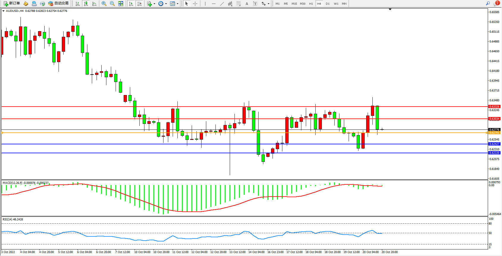澳元美元AUDUSD——4小时K线图显示: