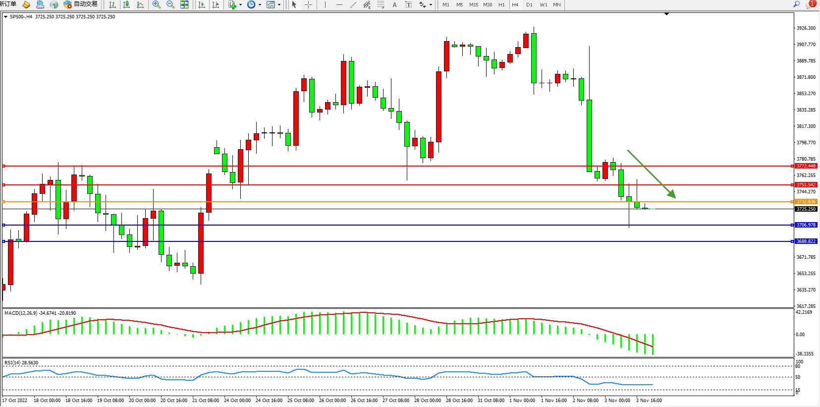 交易策略:3732下方看跌,目标3706、3688