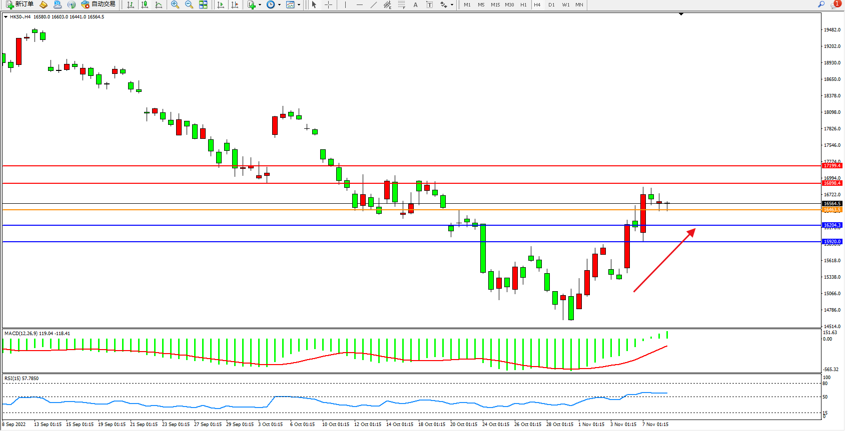 恒指HK50 4小时图