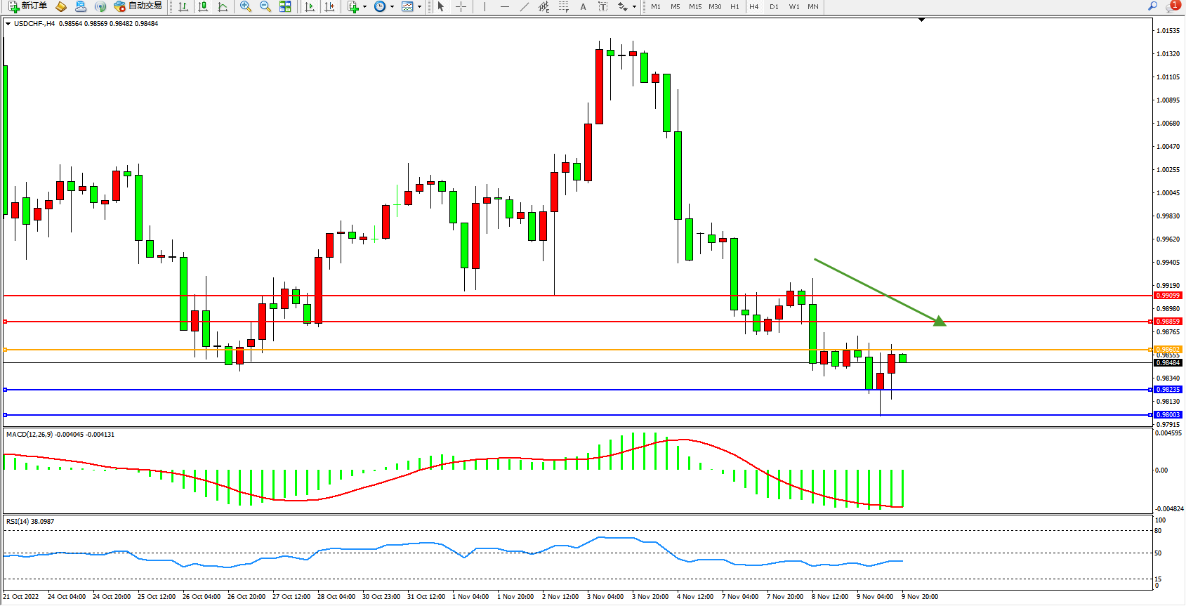 美元瑞郎USDCHF——4小时K线图显示: