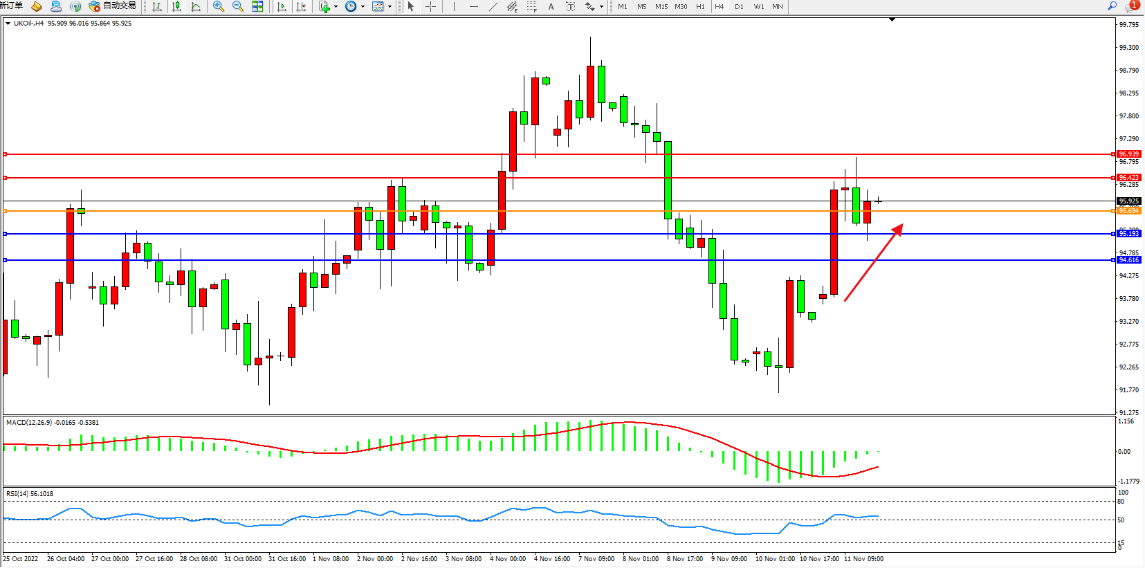 布油UKOil——4小时K线图显示: