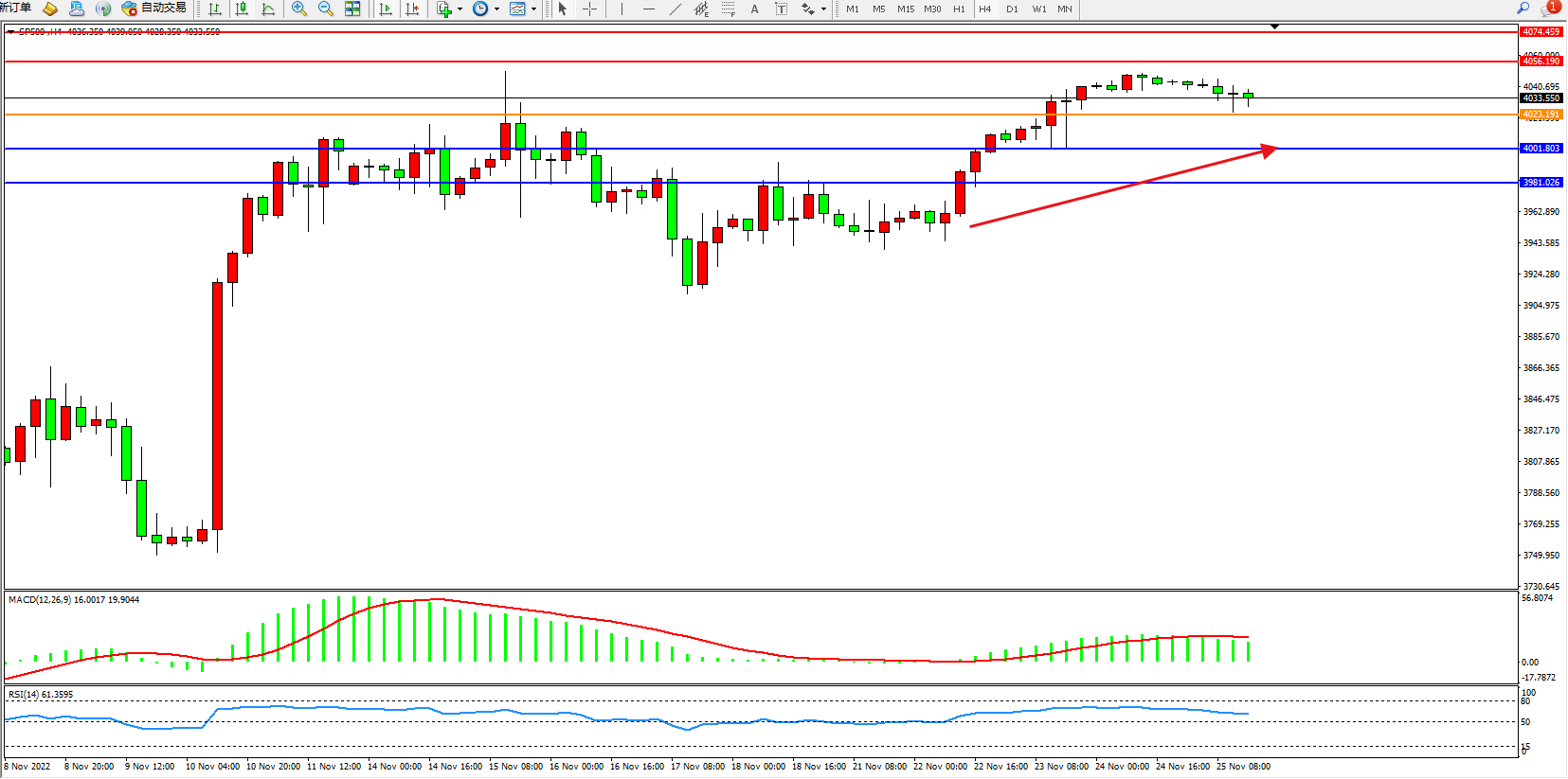 标普SP500——4小时K线图显示: