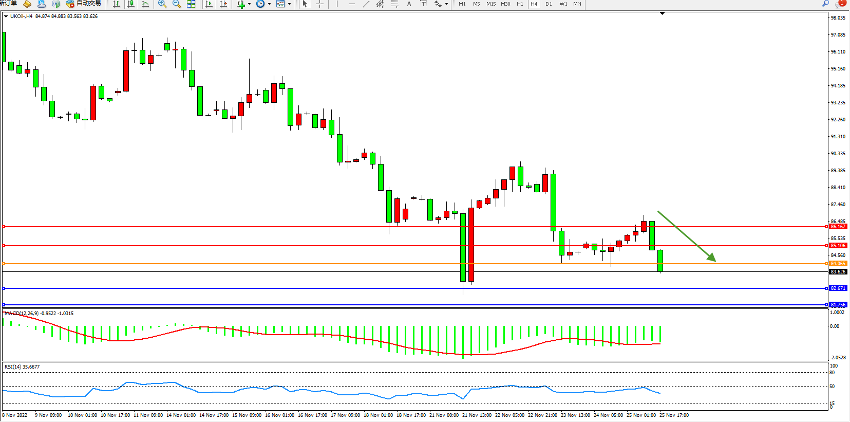 交易策略:84.065下方看跌,目标82.671、81.756