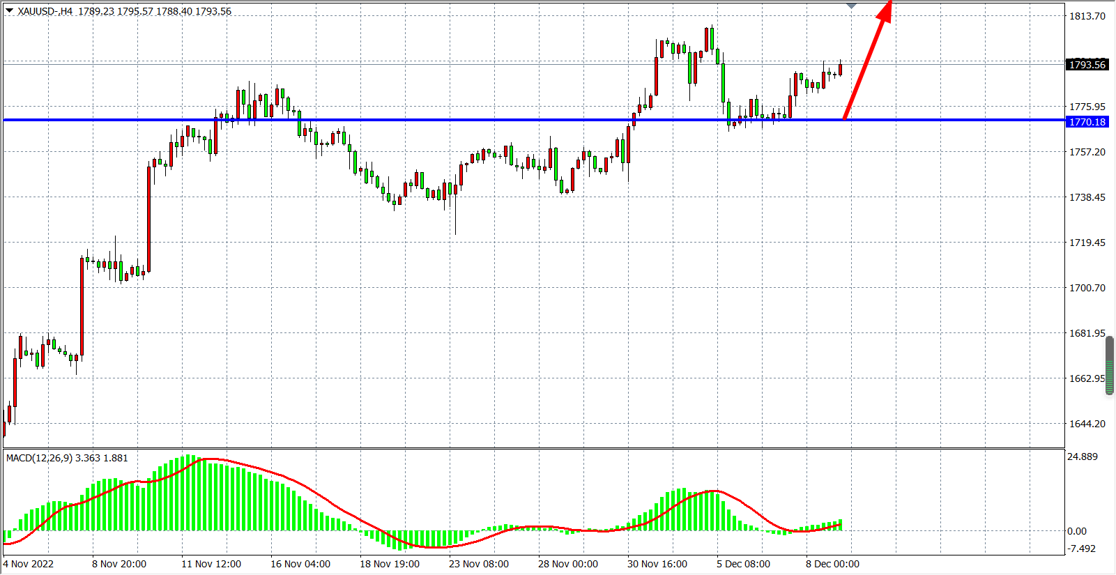 交易策略:在1770.00之上看涨,目标1805.00 1820.00