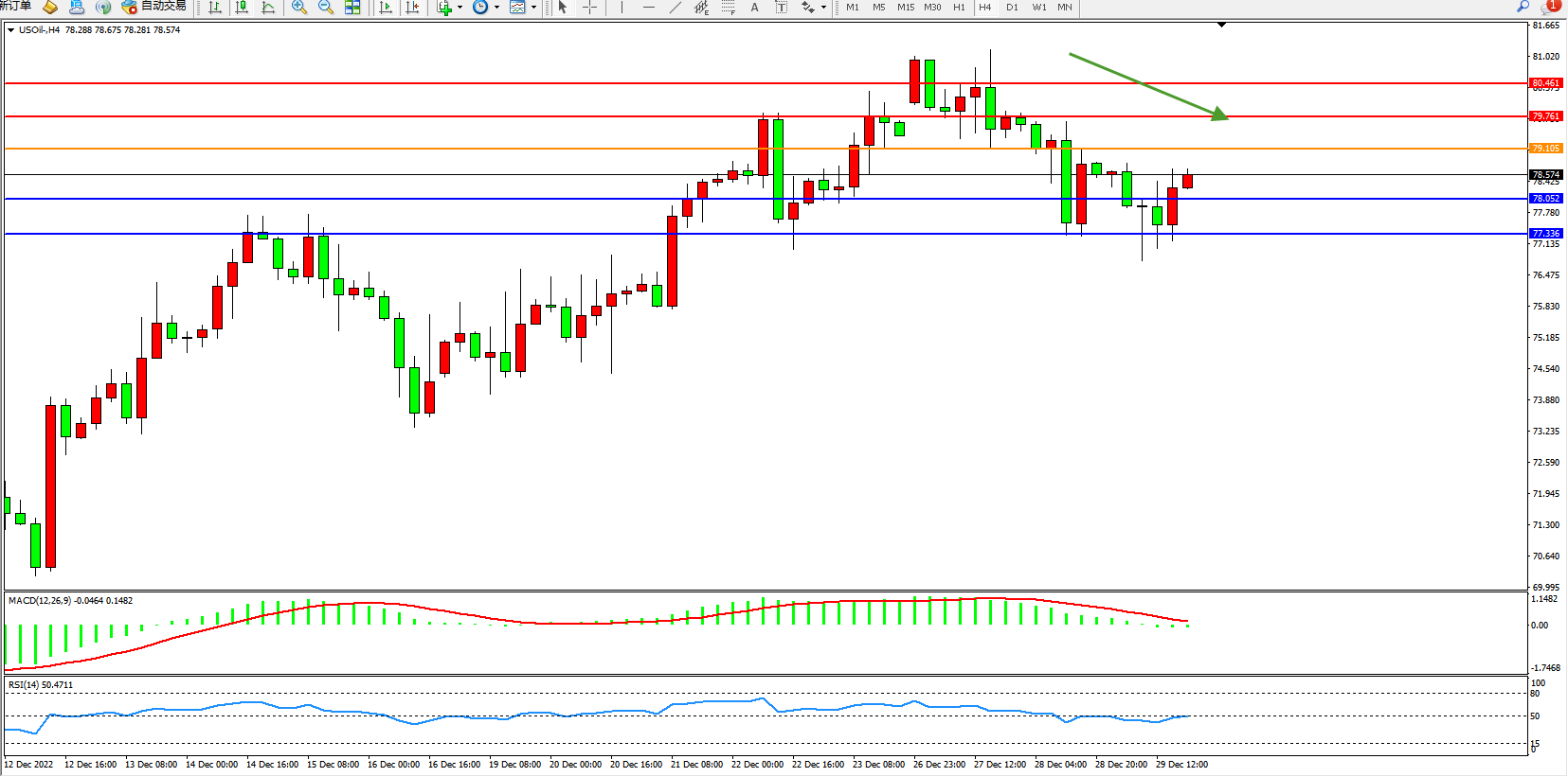 原油USOil——4小时K线图显示: