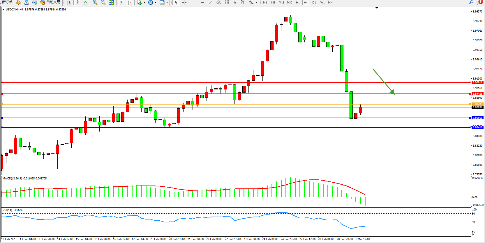 备选策略:6.88200上方看涨,目标6.89456、6.90816