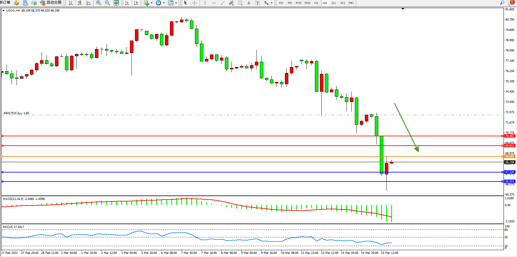原油USOil——4小时K线图显示:
