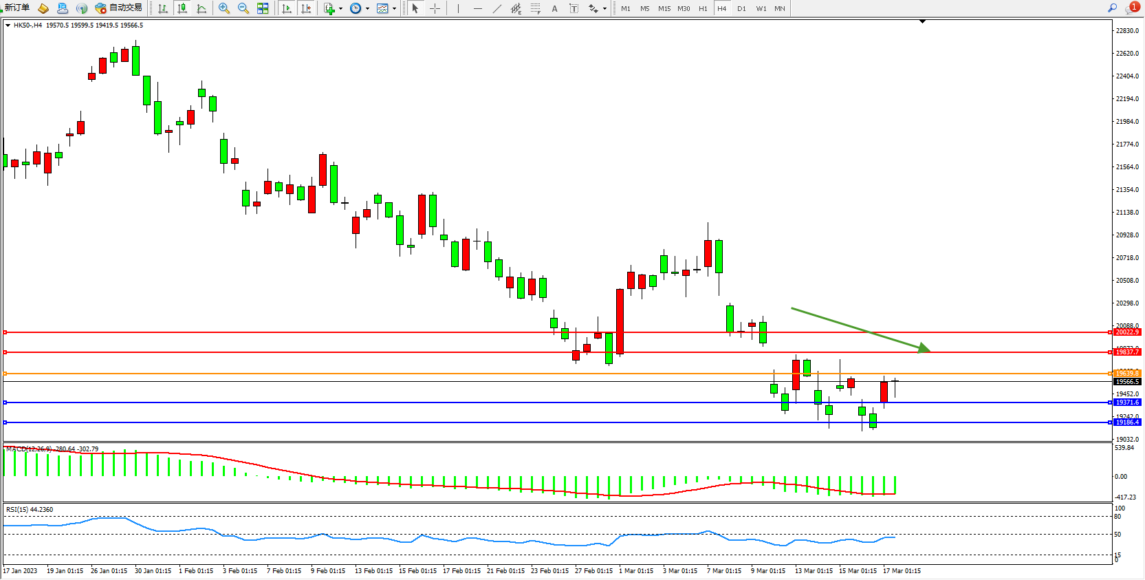 恒指HK50 4小时图